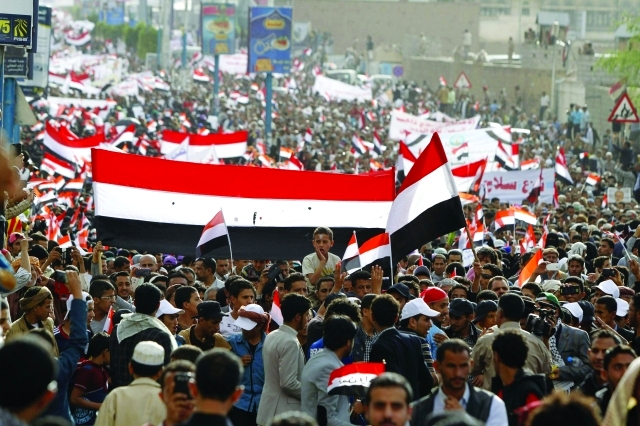 ورفعت الحشود، التي توافدت الى صنعاء من عدة محافظات للمشاركة في هذه المسيرة التي دعت اليها رئاسة «هيئة الاصطفاف الشعبي لحماية المكتسبات الوطنية»، لافتات «تدين وتستنكر محاصرة مداخل صنعاء من قبل الحشود الحوثية المسلحة والتهديدات التي أطلقها عبدالملك الحوثي سعيا منه لفرض خياراته الخارجة عن الإجماع الوطني بالقوة المسلحة».