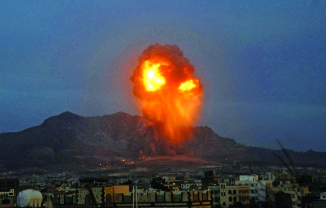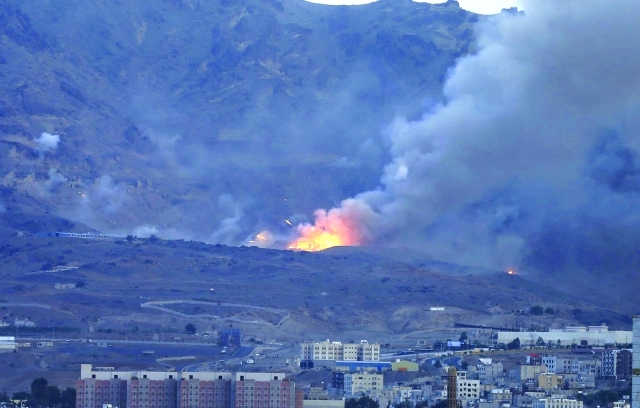 وهزت انفجارات قوية، أمس، العاصمة اليمنية صنعاء، إثر غارة جوية للتحالف العربي لدعم الشرعية في اليمن، والذي تقوده السعودية، أصابت مخزناً للأسلحة والذخيرة تابعاً للتمرد الحوثي. واستهدفت الغارة هذا المخزن الواقع في جبل نقم المطل على الأحياء الشرقية لصنعاء، بحسب شهود لم يكن بإمكانهم الإفادة باحتمال سقوط ضحايا.