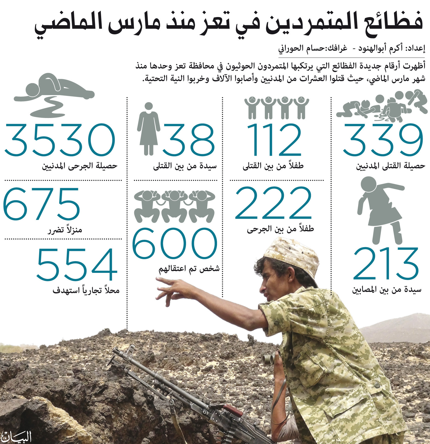 الى ذلك وفي عدن أفادت تقارير إعلامية بمقتل سبعة مدنيين وإصابة 81 آخرين، بينهم نساء وأطفال، إثر قصف عشوائي للمسلحين الحوثيين، على أحياء سكنية في المدينة المحاصرة من الجهات البرية الثلاث.