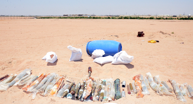 وقالت الداخلية، في بيان، إن الاجهزة الأمنية ضبطت 56 قذيفة (آر.بي.جي) وذخائر حية في إحدى مزارع منطقة العبدلي التي تعود ملكيتها لمتهم كويتي الجنسية هو صاحب المنزل المذكور.