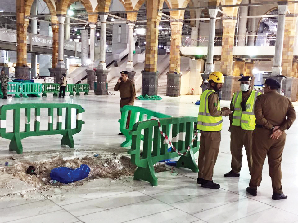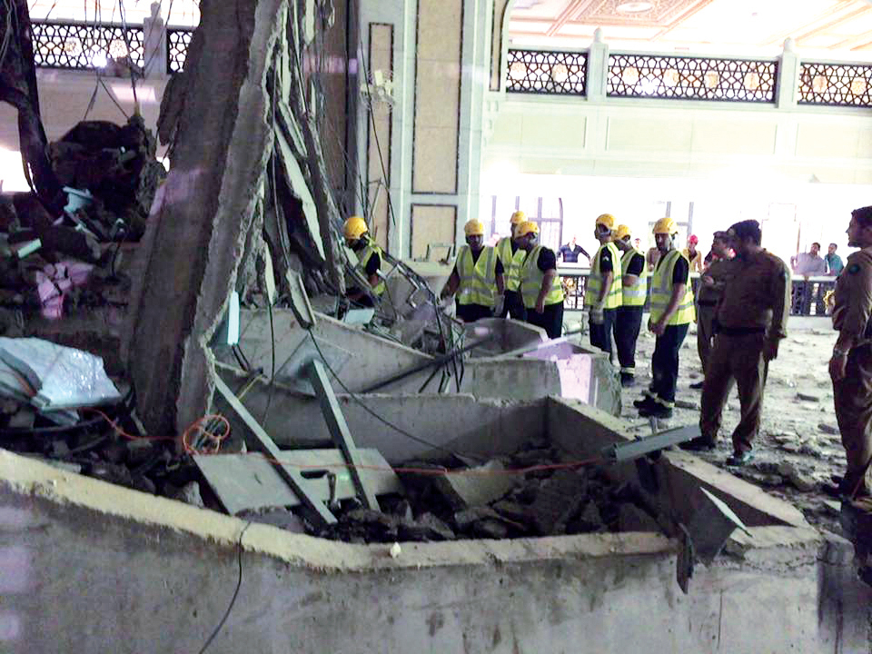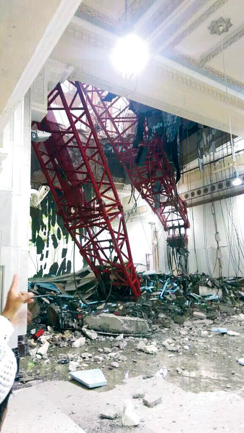 وقال الناطق الرسمي لرئاسة شؤون المسجد الحرام والمسجد النبوي أحمد المنصوري، إنه نتيجة للعواصف الشديدة والرياح القوية والأمطار الغزيرة والحالة الجوية على العاصمة المقدسة، سقط جزء من إحدى الرافعات على جزء من المسعى بالمسجد الحرام وصحن الطواف.