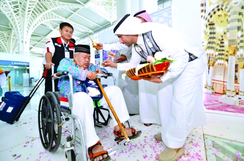 باشرت وزارة الحج والعمرة السعودية برنامج «نحبك يا ضيف الرحمن» لاستقبال الحجاج القادمين لحج هذا العام في مطار الأمير محمد بن عبدالعزيز الدولي في المدينة المنورة، بمشاركة عدد من الجهات الحكومية والأهلية، بحفاوة وترحيب وتقديم الهدايا، ومستقبلين بكل اللغات. وبين مدير مركز فرع وزارة الحج والعمرة في المطار هاني الصاعدي، أن عدد القادمين إلى المدينة المنورة جوّاً وصل إلى ما يقارب 315420 حاجاً، على متن 1521 رحلة طيران دولية.