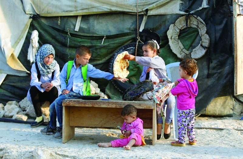 عودة مدرسية رويترز■ فتاة فلسطينية تقدم رغيفاً من الخبز لشقيقها قبيل توجههما إلى المدرسة في قرية سوسية الواقعة شرق مدينة يطا بمحافظة الخليل.