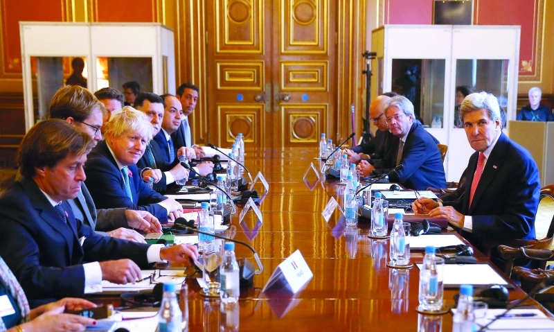 وفي لندن، عقد وزراء خارجية الولايات المتحدة وبريطانيا وإيطاليا محادثات مع رئيس الوزراء الليبي فائز السراج لبحث الأزمة السياسية التي تمنع حكومة الوفاق الوطني التي يرأسها من بسط سيطرتها خارج نطاق العاصمة. والتقى السراج ونائباه بوزير الخارجية البريطاني بوريس جونسون ووزير الخارجية الأميركي جون كيري ونظيرهما الإيطالي باولو جنتيلوني في مقر الخارجية البريطانية في لندن.