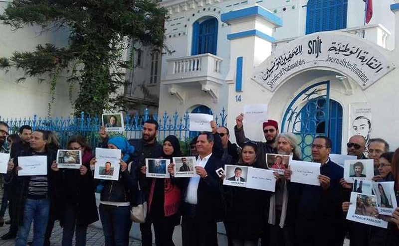 وأكد نقيب الصحفيين التونسيين، ناجي البغوري، على هامش الوقفة، أن مبدأ التضامن الصحفي هو الذي دفع النقابة للدعوة إلى هذا التحرك إسوة بتحركات سابقة لفائدة صحفيين مستهدفين في بلدان أخرى.