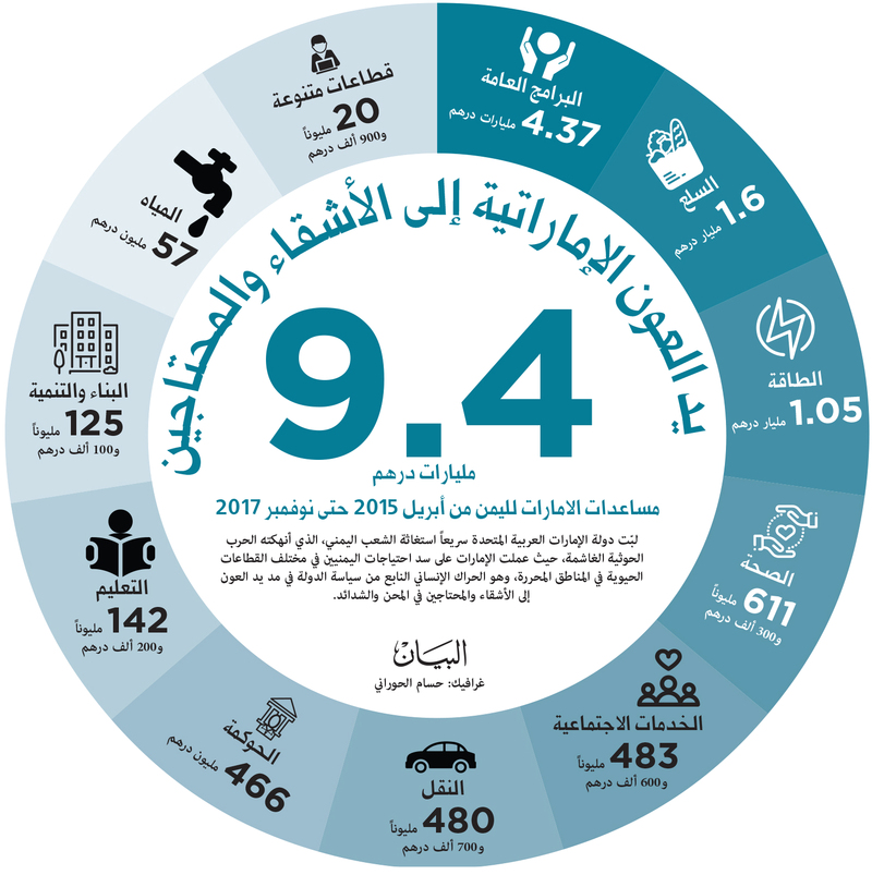 ثمّن سياسيون وعسكريون وإعلاميون الدور الإماراتي في اليمن واعتبروه من الأدوار التي سيظل التاريخ اليــمني محتفظاً بها، مشددين على أن الإمارات ظلت سباقة لنجدة أهل اليمن في كل الملمّات التي لحقت بهم دون منّ ولا أذى، فوقفة الإمارات وقيادتها الرشيدة مع اليمنيين لا تقتصر علـــى الأزمة الحالية والمتمثلة في الاحتلال الحوثي والانقلاب على الشرعية بل تمتد بامتداد التاريخ، مشددين على أنه لا ينكر دور الإمارات في اليمن وأياديها البيضاء في المجالات كافة إلا «إخونجي» أو جاحد.
