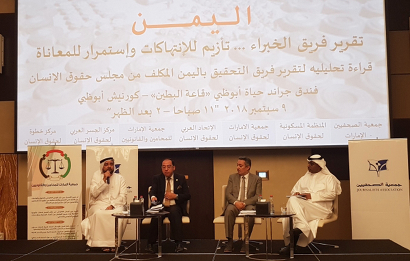جاء ذلك خلال الندوة التي استضافتها جمعية الصحفيين في أبوظبي أمس، بمشاركة 6 منظمات حقوقية عربية معنية بدراسة وتقييم تقرير فريق خبراء الأمم المتحدة المكلف بدراسة حالة حقوق الإنسان في اليمن، تحت عنوان «تقرير فريق الخبراء.. تأزيم للانتهاكات واستمرار للمعاناة».