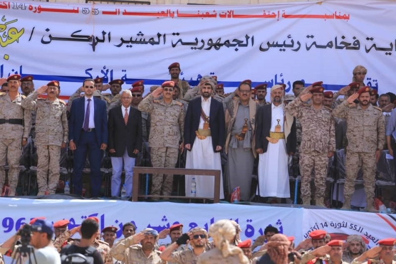 شهد رئيس هيئة الأركان العامة للجيش اليمني، اللواء الركن طاهر العقيلي، في محافظة مأرب، أمس، عرضاً عسكرياً بمناسبة الذكرى الـ55 لثورة 14 أكتوبر، التي أخرجت البريطانيين من الجنوب، وتخريج الدفعة 99 من مدرسة الشرطة العسكرية.