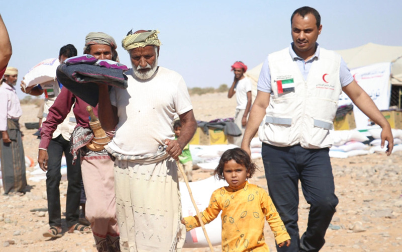 وزعت هيئة الهلال الأحمر الإماراتي، أول من أمس، مساعدات إغاثية تضمنت سلالاً غذائية تحوي المكونات الرئيسية للغذاء إلى جانب مخيمات إيوائية على أسر البدو الرحل وذوي الدخل المحدود في مديرية عرماء بمحافظة شبوة اليمنية.