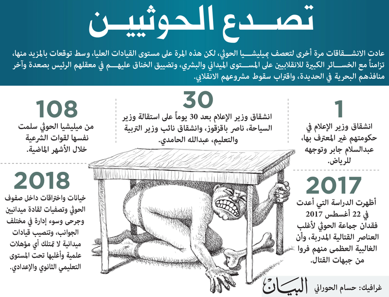 إلى ذلك، قالت مصادر يمنية إن ميليشيا الحوثي فرضت رقابة وإجراءات غير مسبوقة على الوزراء والمسؤولين الذين لا ينتسبون لزعيم الميليشيا عبد الملك الحوثي وأسرته، أو المقربين منهم خشية انشقاقهم والتحاقهم بالحكومة الشرعية. وأشارت المصادر إلى قيام قيادات الحوثي في صنعاء باستدعاء بعض الوزراء والمسؤولين الذين لا يثقون بهم وتدور حولهم شكوك.