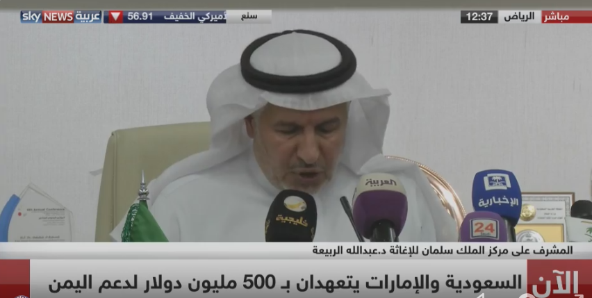 وأعلنت السعودية والإمارات عن تخصيص 500 مليون دولارلدعم جهود الإغاثة في اليمن.