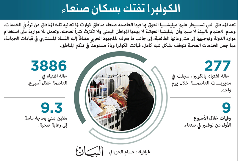 وفي سياق آخر، كشف وزير حقوق الإنسان بحكومة الشرعية، محمد عسكر، عن عودة وباء الكوليرا للتفشي في المناطق التي يسيطر عليها الحوثي، خاصة صنعاء وبعض المحافظات.