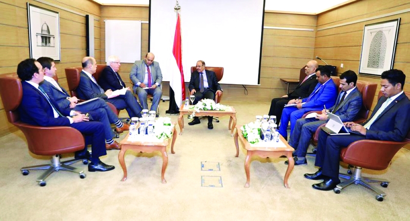 وفِي السياق جدد نائب الرئيس اليمني التأكيد على الموقف الثابت للشرعية نحو خيار السلام الدائم غير المنقوص والمستند على المرجعيات الثلاث المتمثلة في المبادرة الخليجية وآليتها التنفيذية ومخرجات مؤتمر الحوار الوطني وقرار مجلس الأمن الدولي رقم 2216.