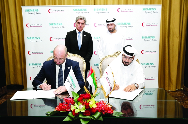 وقعت هيئة الهلال الأحمر الإماراتي وشركة سيمنز العالمية مذكرة تفاهم لتعزيز قدرات القطاع الصحي في اليمن، وذلك ضمن استراتيجية الهيئة لتوسيع قاعدة شركائها الإنسانيين حول العالم، ولفت انتباه المانحين والشركات والمؤسسات الكبرى للقضايا الإنسانية التي تؤرق الكثير من الشعوب، وتعزيز دورها ومساهمتها في تخفيف المعاناة البشرية وصون الكرامة الإنسانية.