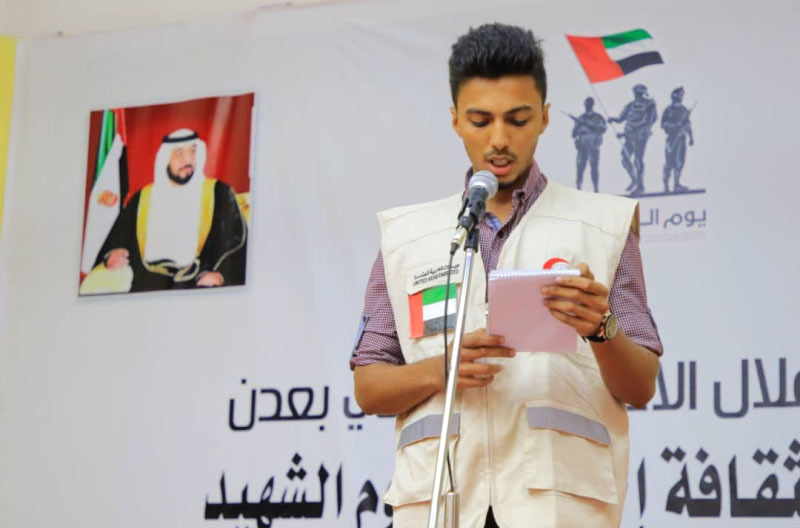 ونظمت الوزارة فعالية في المسرح الوطني بمديرية المعلا حضرها مراد رفيق مستشار وزير الثقافة، الذي ألقى كلمة أكد فيها أن يوم الشهيد هو تخليد لذكرى شهداء الإمارات الذين استشهدوا في ميادين القتال دفاعاً عن اليمنيين، معرباً عن تقدير الشعب اليمني لتضحيات أبناء الإمارات دفاعاً عن اليمن.مساعدات