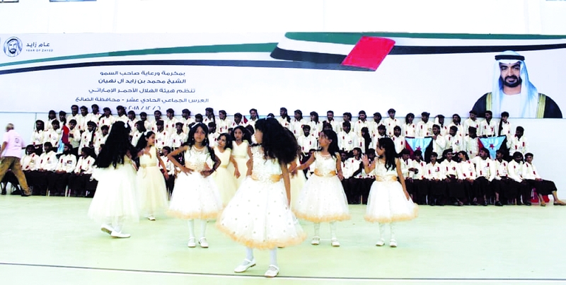 بتوجيهات صاحب السمو الشيخ محمد بن زايد آل نهيان، ولي عهد أبوظبي نائب القائد الأعلى للقوات المسلحة، ومتابعة سمو الشيخ حمدان بن زايد آل نهيان، ممثل حاكم أبوظبي في منطقة الظفرة رئيس هيئة الهلال الأحمر الإماراتي.. نظمت الهيئة 11 عرسا جماعيا خلال «عام زايد» في عدد من المحافظات اليمنية استفاد منها 2400 شاب وفتاة في كل من الحديدة وحضرموت وشبوة وأبين وعدن وأرخبيل سقطرى.