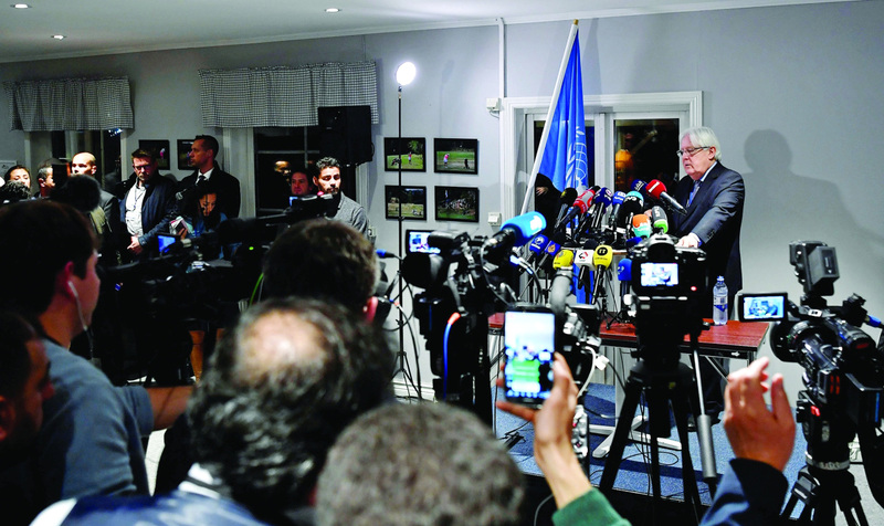 وقال مصدر في الفريق الحكومي، إن غريفيث جمع زعماء الوفدين معاً للمرة الأولى، في اجتماع حضره السفراء الخمسة.