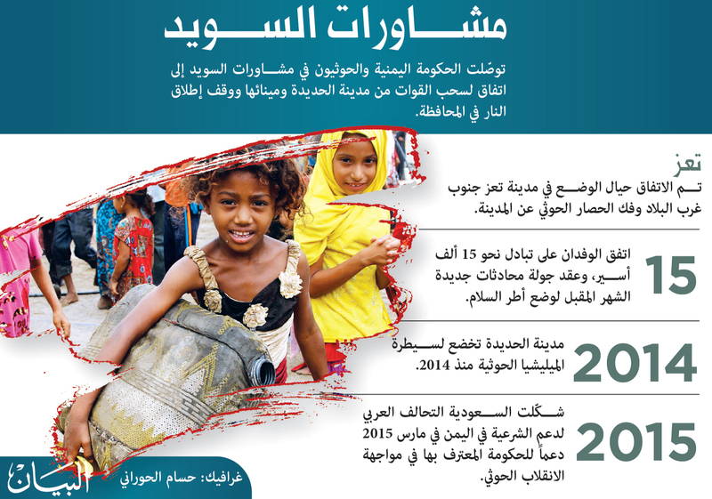 وتوصّلت الحكومة اليمنية والميليشيا الحوثية في مشاورات في السويد استمرت لأسبوع واختتمت الخميس الماضي، إلى اتفاق لسحب القوات المقاتلة من مدينة الحديدة ومينائها، ووقف إطلاق النار في المحافظة.