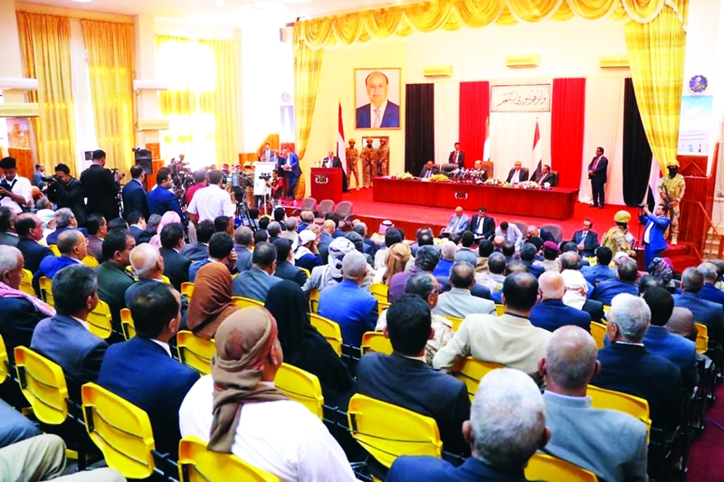 من جهته، أكد الرئيس اليمني، عبدربه منصور هادي، في كلمة له خلال الجلسة، أن الشرعية تهدف لإنجاز سلام شامل وفق المرجعيات الثلاث، إلا أن ميليشيا الحوثي تعرقل تلك الجهود، وتتعمّد إفشال كل الاتفاقيات، مضيفاً: «انعقاد البرلمان يشير بوضوح لفشل المشروع الحوثي المدمر».