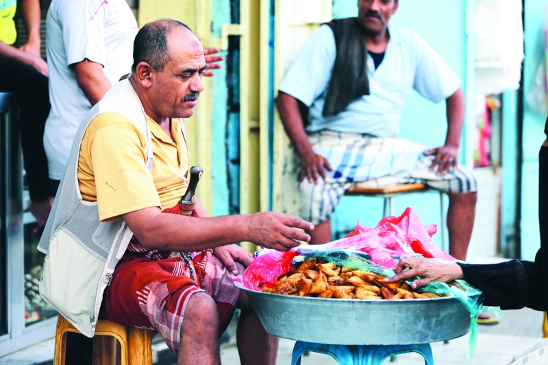 خطوات إضافية ستقودك لرؤية بائعات الخبز والفطير البلدي المتعدد في مكونات صنعه وأنواعه، بأزيائهن الملونة باذخة الجمال، فيما إذا يممت وجهك يساراً سترى زقاقاً تتجاور فيه مطاعم السلتة التي يفطر فيها عدد من الناس القادمين إلى مدينة تعز، والذين لا أهل لديهم فيها، ومحلات أخرى تصنع فيها حلويات رمضان الألذ كـ(البقلاوة، والشعيبية، والرواني، والطرمبا، البسبوسة).