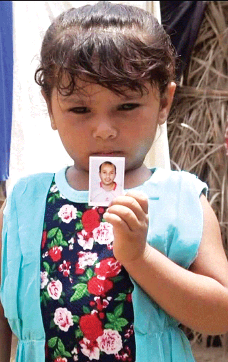 لاتزال صغيرته أطياف ابنة الأربعة أعوام تنتظر عودته.. تتحسس ملامح وجهه في الصورة التي تحملها معها، ووالده الذي أصبح لا يستطيع السير إلا متعكزاً يأمل بأن يرى ابنه حياً مرة أخرى مطالباً بذلك، فيما أمه المكلومة لا تفارق الدمعة عينيها.