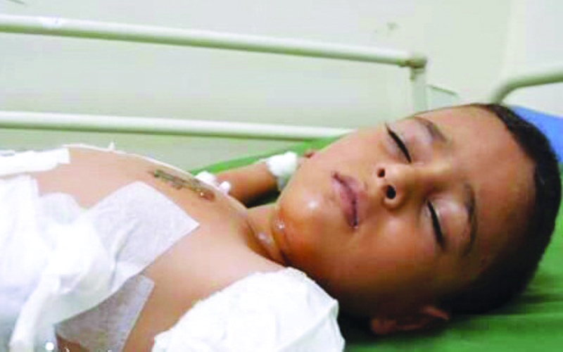 يقول صادق عبده أحد أقارب الأسرة لـ «البيان» أدت شظايا قذيفة الهاون لبتر اليد اليسرى للطفل محمد، وشظايا في البطن وفي رجليه،وهو الآن في حالة سيئة في المشفى «.