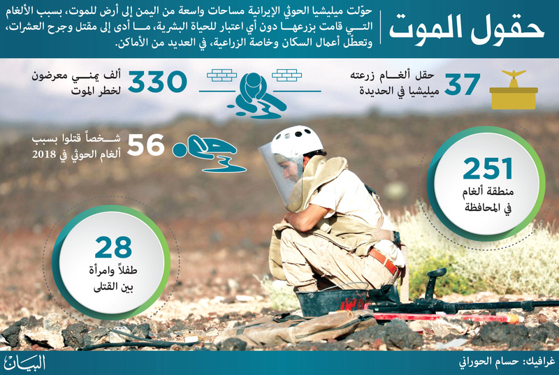 حوّلت ميليشيا الحوثي الإيرانية مساحات واسعة من محافظات اليمن إلى حقول ألغام لا تتوقف عن الفتك بالمواطنين وتعطيل مصالحهم، لينتج عن ذلك موجة نزوح كبيرة لعشرات الآلاف من سكان هذه المناطق.