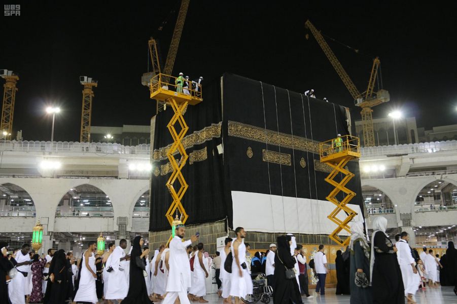 وتم استبدال كسوة الكعبة المشرفة القديمة بكسوة جديدة، بإشراف ومتابعة الرئيس العام لشؤون المسجد الحرام والمسجد النبوي الشيخ الدكتور عبدالرحمن بن عبدالعزيز السديس.الصورة