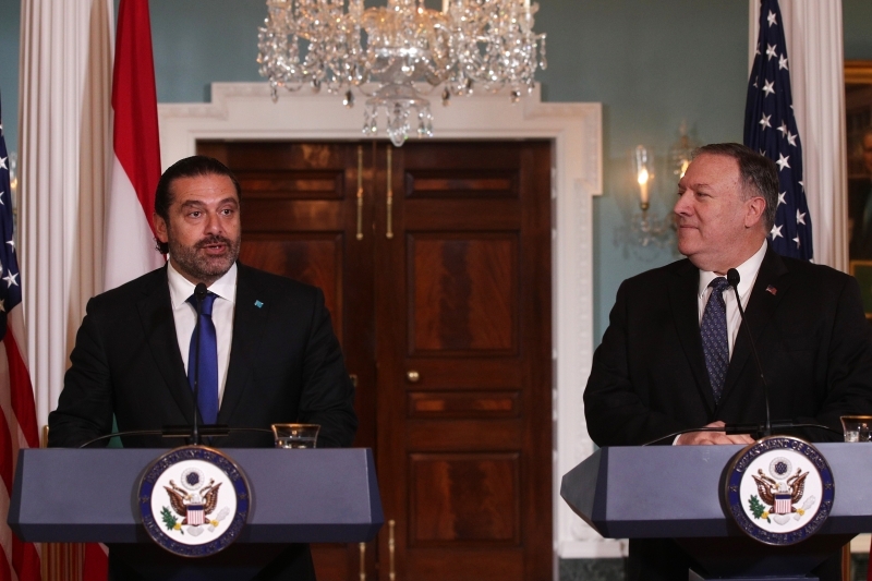 قال وزير خارجية الولايات المتحدة مايك بومبيو، إن لبنان دولة مهددة من إيران وحزب الله. وأكد بومبيو، في مؤتمر صحافي مشترك مع رئيس وزراء لبنان سعد الحريري في واشنطن، التزام بلاده بدعم مؤسسات الدولة اللبنانية، معرباً عن استعداده للوساطة في قضية الخلاف البحري بين لبنان وإسرائيل.
