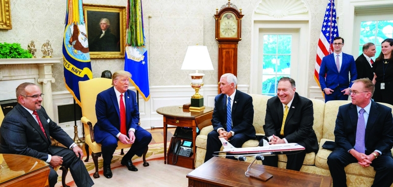 وأكد خلال لقائه ترامب في البيت الأبيض، على أن مملكة البحرين ستظل دوماً داعماً رئيسياً لكافة الجهود الدولية الساعية إلى تعزيز التنمية والاستقرار عبر مشاركاتها الفاعلة في مختلف التحالفات الدولية والإقليمية التي من شأنها تعزيز الأمن والسلم الدوليين، منوهاً بالدور الذي تضطلع به المملكة من خلال العمل المشترك مع الدول الحليفة الشقيقة والصديقة لتأمين الممرات الدولية للتجارة والطاقة وحرية الملاحة في المنطقة، مشيراً سموه إلى الدور الاستراتيجي والحيوي الذي تقوم به الولايات المتحدة في حفظ أمن واستقرار المنطقة، والذي يشكل ركيزة أساسية في مواصلة مسارات التنمية كون الأمن أساساً لها.