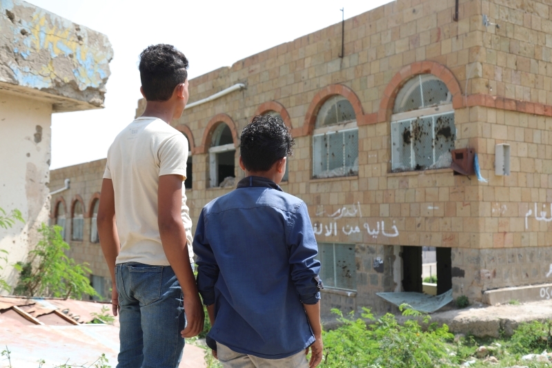 «مدرسة خالية من الألغام»، كتابة على جدران مدرسة عقبة بحي ثعبات في تعز، عند قراءتك هذه العبارة «تصاب بالذهول»، وتتساءل أي قلوب تحملها الميليشيا الإيرانية، فخخوا حاضر أطفال اليمن ومستقبلهم.