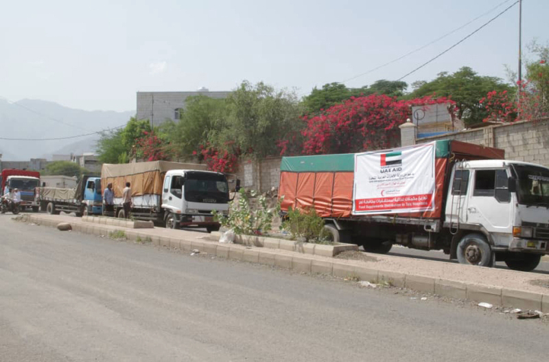 على الصعيد الإنساني، زوّدت الإمارات، عبر ذراعها الإنسانية هيئة الهلال الأحمر، مستشفيات محافظة تعز اليمنية بـ12 طناً من المكملات الغذائية.