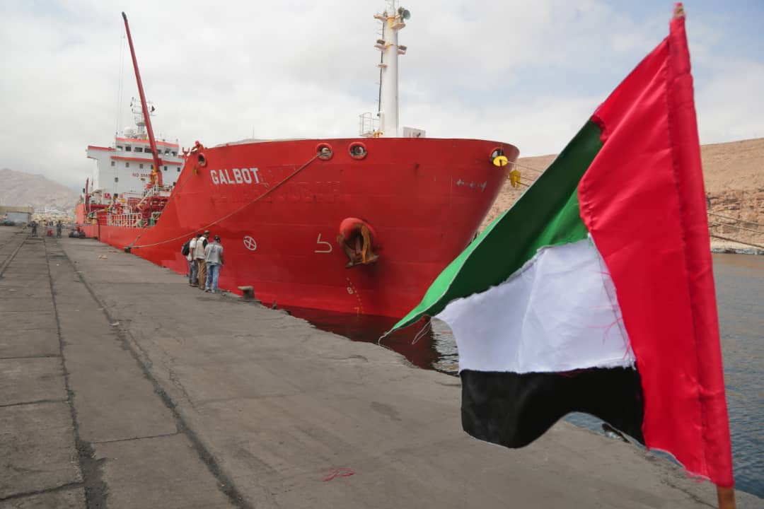 رست على رصيف ميناء المكلا الباخرة النفطية (Galbo ) حاملة على متنها (7) آلاف طن متري من مادة الديزل مقدمة من دولة الإمارات العربية المتحدة كدفعة ثانية دعما لقطاع الكهرباء بساحل حضرموت.