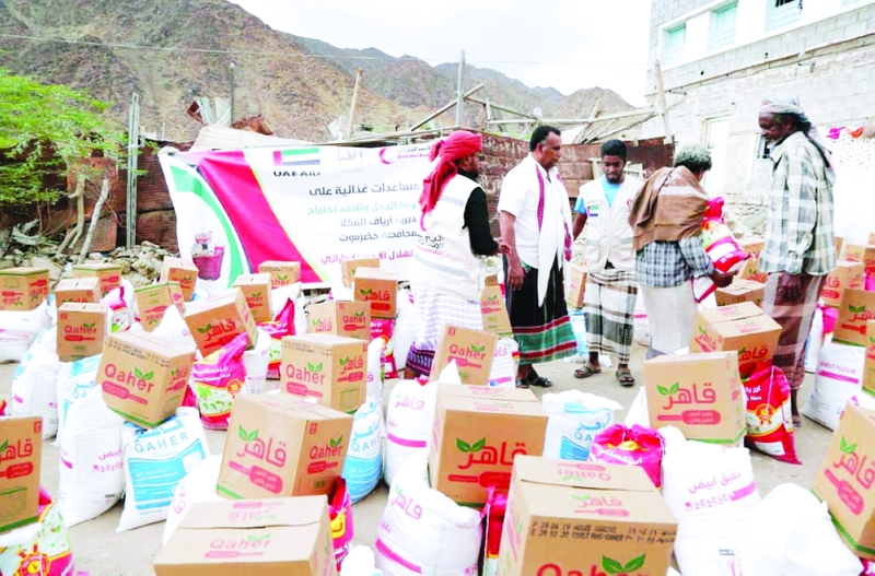قدمت دولة الإمارات 2200 سلة غذائية تزن 177.8 طناً من المساعدات الغذائية لأهالي مديرية أرياف المكلا وضواحيها في محافظة حضرموت، استفاد منها 11 ألف شخص من الأسر غير القادرة، وذلك في إطار الدعم الإماراتي المتواصل لأهالي المحافظة ومختلف المحافظات المحررة. وتمّ توزيع المساعدات الغذائية عبر فرق هيئة الهلال الأحمر الإماراتي، من خلال قوافل إغاثية تم تسييرها إلى عدد من القرى والمناطق الريفية بمحافظة حضرموت.