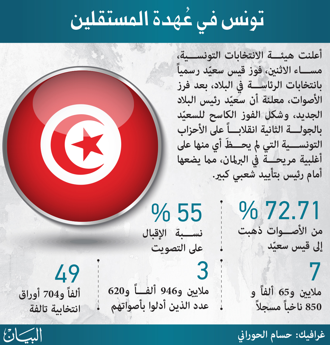 وأكدت نقابة الصحفيين «تعمّد بعض المجموعات من المحتفلين بنتائج سبر الآراء التي تفيد بفوز المترشح الرئاسي قيس سعيّد، مساء الأحد، إلى الاعتداء على صحفيين في مناطق متفرقة من البلاد».