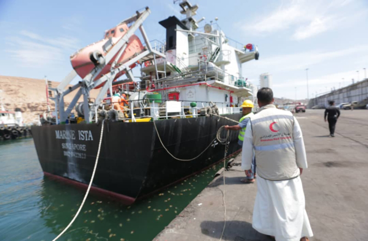 رست على رصيف ميناء المكلا باخرة المشتقات النفطية الثالثة على التوالي و على متنها 7200 طن لتري من مادة المازوت والمقدمة من دولة الامارات العربية المتحدة دعما لقطاع الكهرباء بمحافظة حضرموت و وقوفا إلى جانب الشعب اليمني الشقيق.