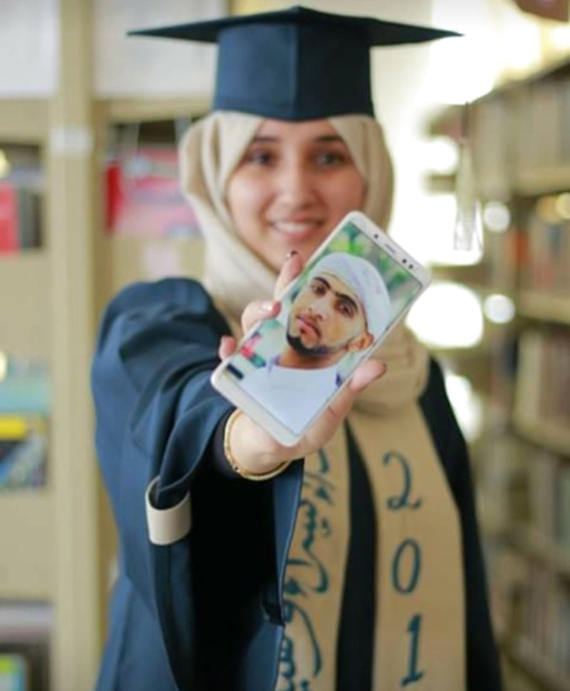 رغم احتفاء إسراء وهيب الشرعبي بتخرجها في كلية الطب (طب عام وجراحة) إلا أن احتفالها كان ناقصاً بسبب استمرار اعتقال خطيبها صامد العامري في سجون ميليشيا الحوثي الإيرانية منذ أربع سنوات.