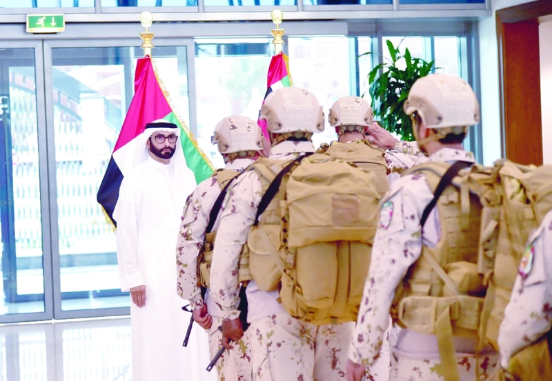 وكان في استقبال قوة الواجب معالي محمد بن أحمد البواردي، وزير دولة لشؤون الدفاع، ومعالي الفريق الركن حمد محمد ثاني الرميثي، رئيس أركان القوات المسلحة.