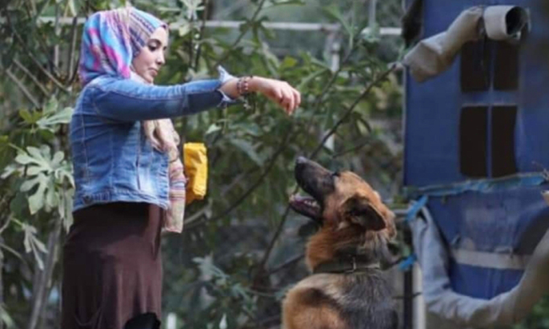 وحول نظرة الشارع لمهنتها، أشارت إلى أنه من الصعب على المجتمع تقبلها كامرأة عاملة في هذا المجال، وهو أمر عانته أثناء التدريب، مشددة على أن تدريب الكلاب أمر سهل غير أن تقبل المجتمع هو الصعب.