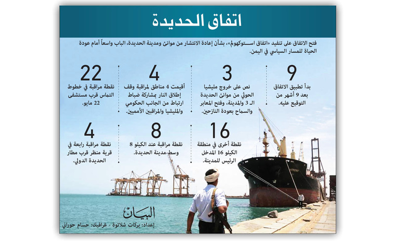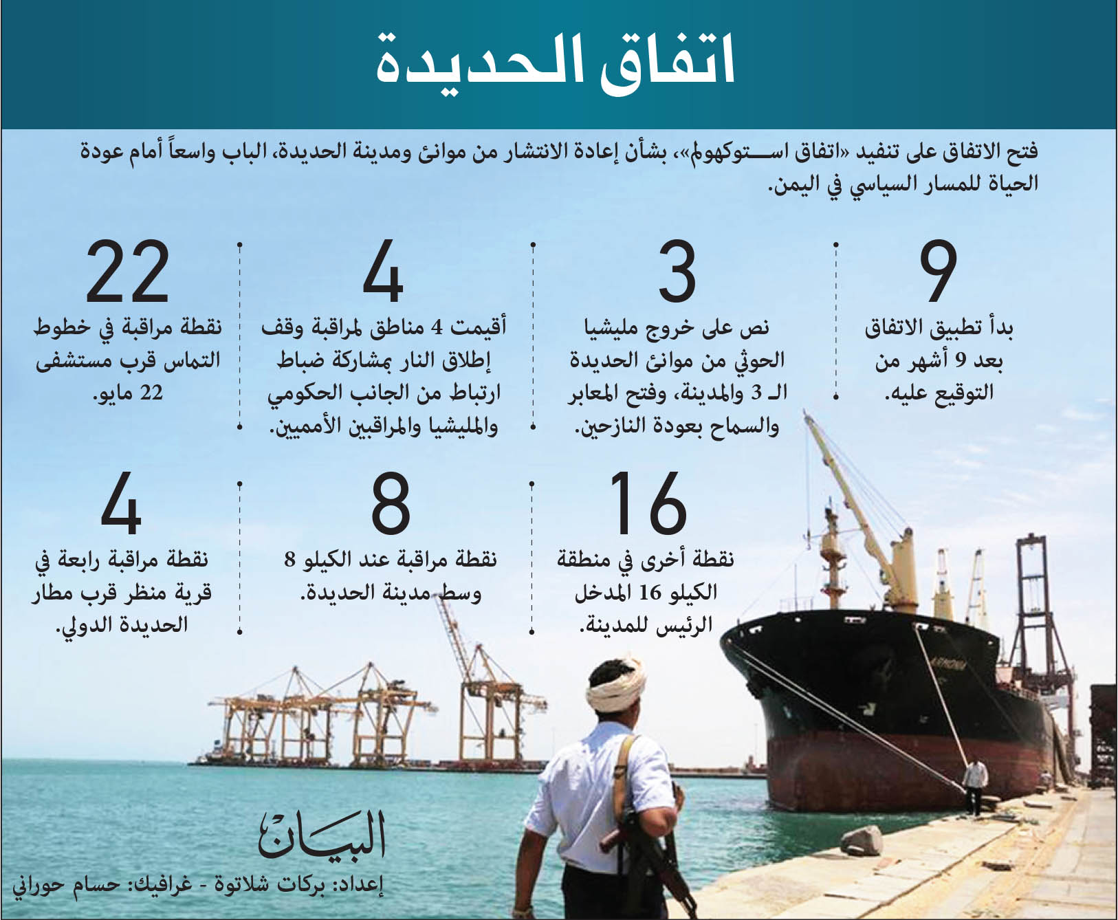 وذكر بيان أصدره رئيس فريق المراقبين الدوليين في محافظة الحديدة، أبهيجيت جوها أنه وخلال الأيام الأخيرة ، وردت تقارير حول حوادث تتضمن استحداث تحصينات جديدة، وتحريك للقوات، واستخدام طائرات مُسيرة، مؤكداً أن ذلك يتنافى مع الاتفاقات بشأن وقف إطلاق النار في الحديدة. وأضاف البيان أنه «في ظل هشاشة الوضع في الحديدة، يحث الفريق جوها الطرفين في اليمن على استمرار انخراطهما في العمل بشكل مُشترك وبروح النية الحسنة، من خلال آلية التهدئة، وتعزيز وقف إطلاق النار للتعامل مع الحوادث، التي قد تُشكل تصعيداً للعنف في الحديدة. كما يؤكد التزام بعثة الأمم المتحدة لدعم اتفاق الحديدة المستمر في دعم عمل الطرفين من خلال الآلية». ويكرر الفريق جوها نداءه للأطراف بالكف عن أي أفعال تتناقض مع اتفاق استوكهولم