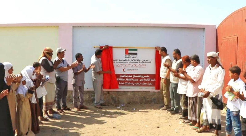 افتتحت دولة الإمارات - عبر ذراعها الإنسانية هيئة الهلال الأحمر - مدرسة جديدة في مديرية الخوخة تخدم 800 طالب، فيما تشهد الأسابيع المقبلة افتتاح ثماني مدارس أخرى، ليرتفع عدد المرافق التعليمية التي أعادت الإمارات ترميمها وتأهيلها وتأثيثها إلى 36 موزعة على امتداد مديريات الساحل الغربي المحررة.