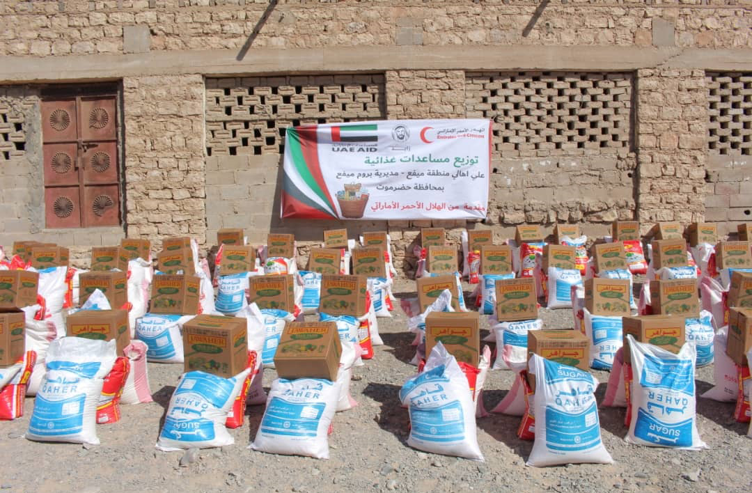 وقامت هيئة الهلال الأحمر الإماراتي بتوزيع 900 سلة غذائية تزن "72 طنا و720 كيلوجراما" على مناطق "حصاحصة، وانتيشة، والمسيني، وحرو، وظلومة " بالمديرية ضمن سلسلة من الحملات نفذتها في عموم مناطق حضرموت ووصلت إلى عدة مناطق نائية.