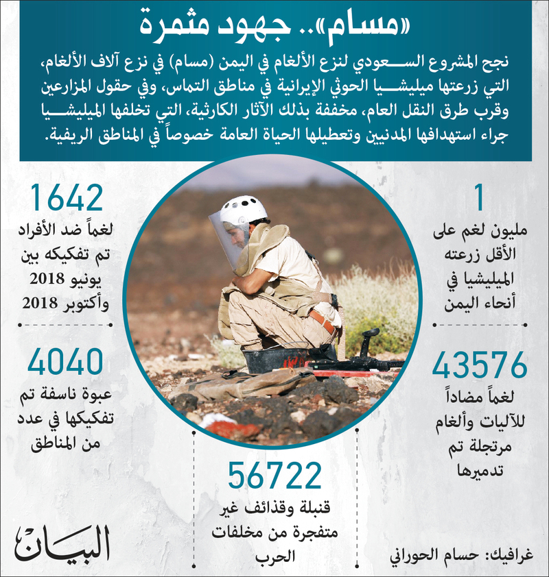 وقال المركز، إن حقول الألغام والمتفجرات تصيب الفئة الأكثر ضعفاً في مجتمع الحرب باليمن وهم النساء والأطفال، حيث إنهم الأكثر حركة وتنقلاً في القرى المأهولة والمدن المحاصرة.