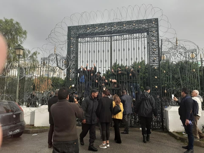 ووصل محتجون من مدينة القصرين جنوبي غرب العاصمة، إلى مقر البرلمان في مدينة باردو بهدف الضغط على نواب الشعب وتوفير فرص عمل ومشاريع للتنمية بجعبتهم.