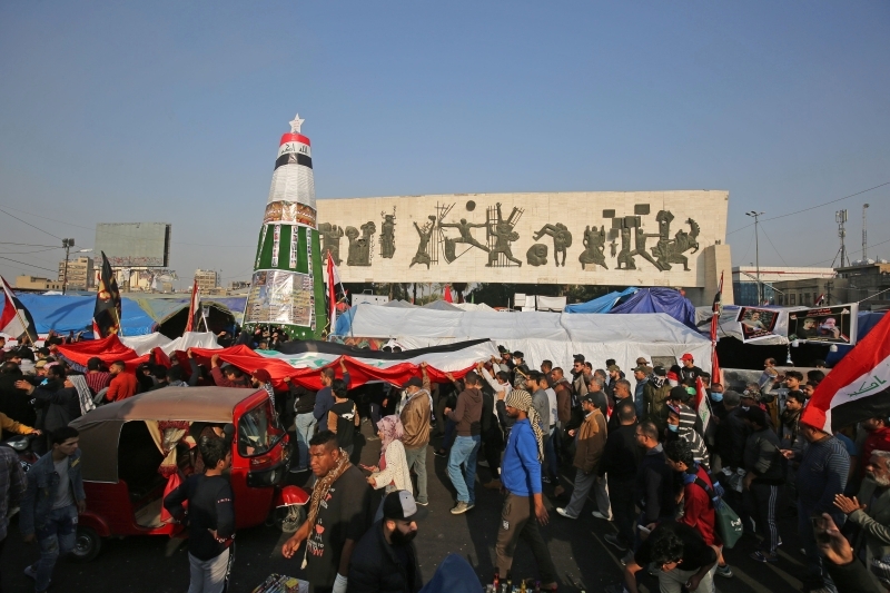 ويطالب العراقيون المحتجون، منذ الأول من أكتوبر، بتغيير النظام السياسي الذي أرساه الأمريكيون عقب إطاحة صدام حسين في عام 2003، وتسيطر طهران على مفاصله اليوم. ويرفضون تسمية أي شخصية كان لها دور في العملية السياسية خلال الأعوام الـ16 الماضية، وسط تخوف من عودة العنف إلى الشارع الذي أسفر عن مقتل نحو 460 شخصاً وإصابة 25 ألفاً آخرين بجروح.