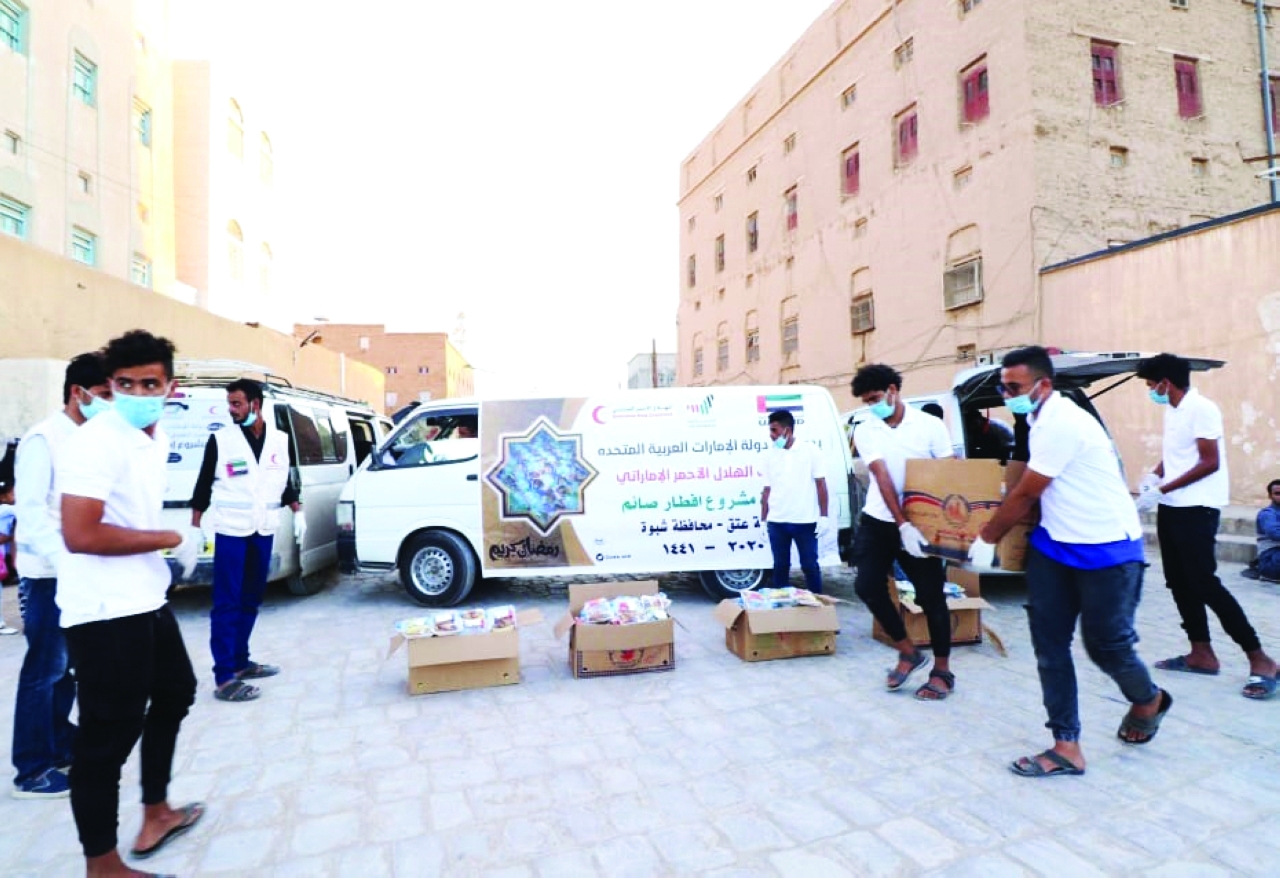 ويتنوع النشاط الإنساني لهيئة الهلال الأحمر، مع حلول شهر رمضان. فقد قامت الهيئة قبل ثلاثة أيام، بتوزيع المير الرمضاني، استفاد منه 360 ألف شخص في حضرموت وشبوة والساحل الغربي بمحافظة الحديدة.