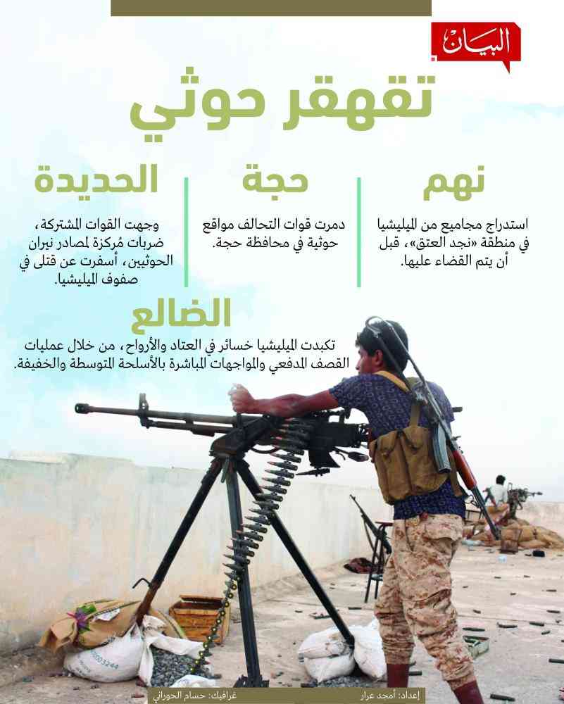ووفقاً لهذه المصادر فإن ميليشيا الحوثي حشدت الآلاف من مقاتليها إلى هذه الجبهة بهدف تحقيق أي اختراق يمكنها من استعادة المواقع التي خسرتها خلال المواجهات السابقة إلا أن الهجوم انتهى بخسائر فادحة حيث قتل العشرات وأصيب اخرون كما دمرت آليات قتالية وعربات لنقل المقاتلين.