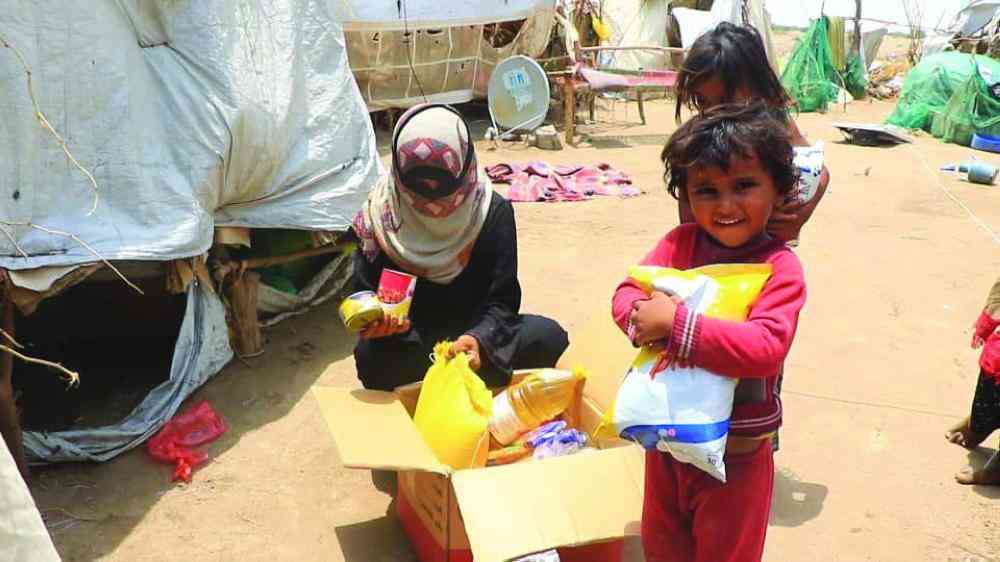 وبمشاركة السلطة المحلية ومكتب حقوق الإنسان في محافظة الحديدة وزعت فرق الهيئة المساعدات النصفية للأسر التي تسكن في المخيم الذي أنشأته هيئة الهلال في قرية الوعرة التابعة لمديرية الخوخة، حيث تقدم لهذه الأسر سلالاً غذائية بشكل منتظم بواقع مرتين في الشهر.