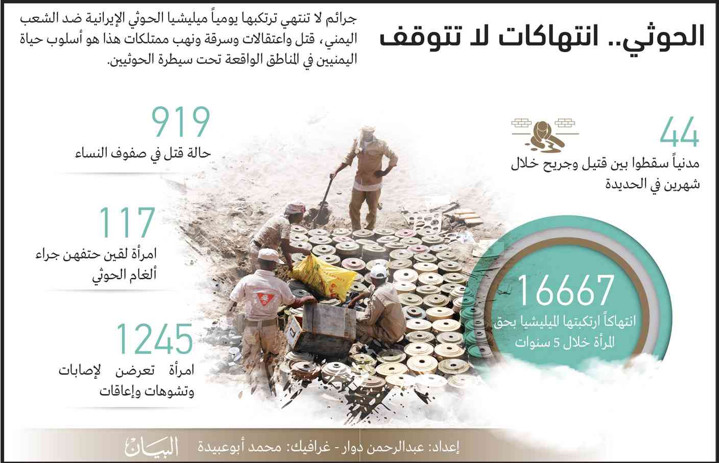 وفي مديرية حيس، قصفت ميليشيا الحوثي الأحياء السكنية في عاصمة المديرية بقذائف مدفعية الهاون، كما فتحت نيران أسلحتها الرشاشة على المنازل في المديرية. حيث تواصل ميليشيا الحوثي انتهاك الهدنة التي وقعت برعاية الأمم المتحدة أواخر العام 2018، بشكل يومي، واستهداف الأحياء والقرى السكنية ومزارع اليمنيين في مختلف مديريات محافظة الحديدة.