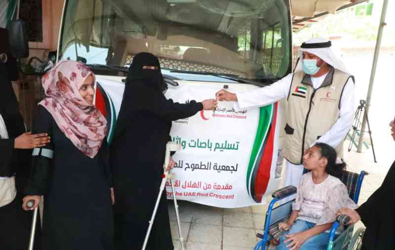 زوّدت دولة الإمارات العربية المتحدة، ممثلة في هيئة الهلال الأحمر، جمعية الطموح لرعاية أصحاب الهمم بمدينة المكلا بمحافظة حضرموت، بوسيلة نقل وأثاث مكتبي وزي مدرسي.